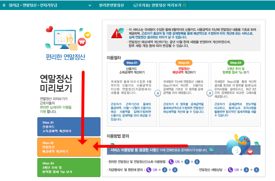 3️⃣'예상세액 계산하기' 메뉴를 통해 환급 예상액을 확인할 수 있습니다.